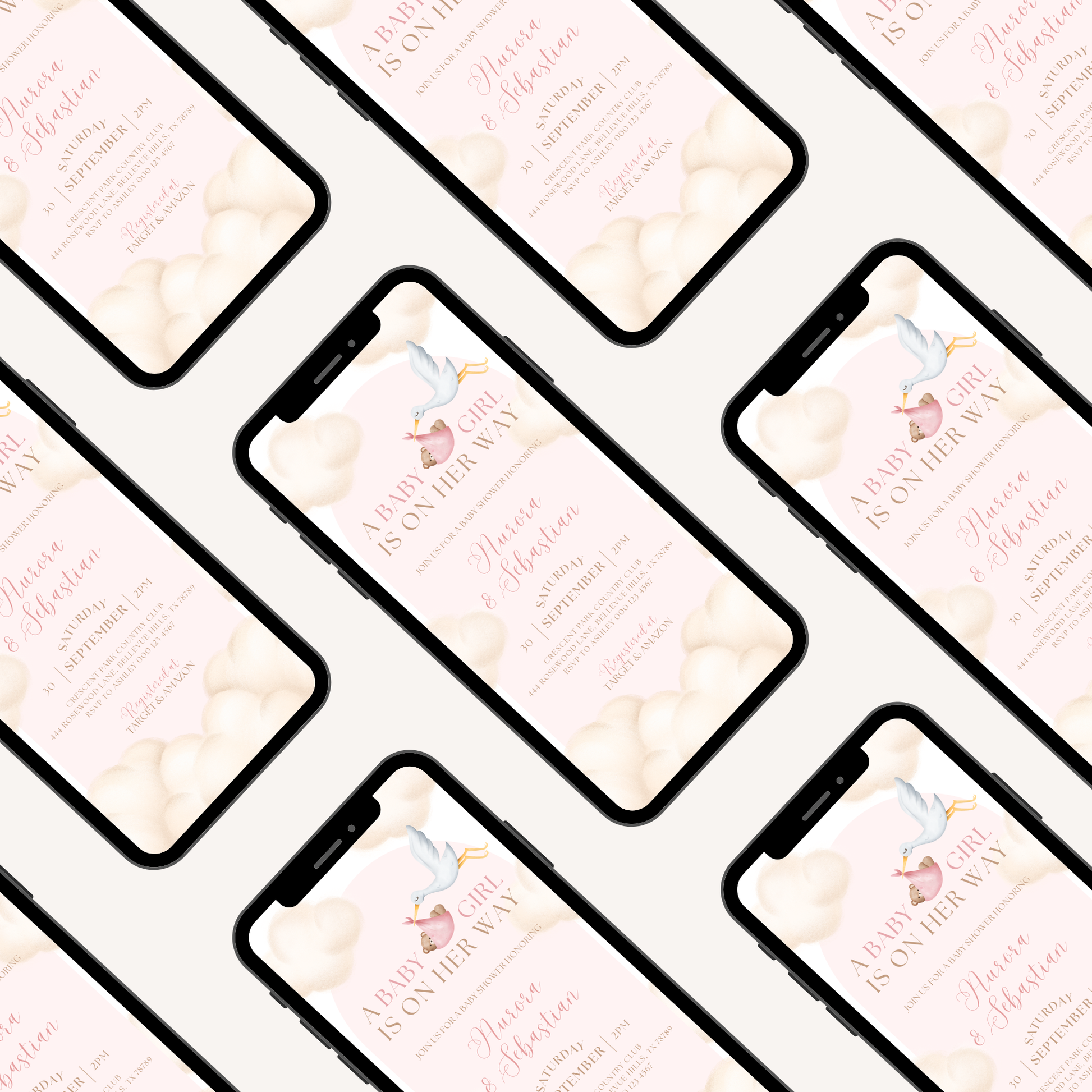 Celebrating Under the Clouds | A Baby Girl is on Her Way | Pink | Cloud Theme Baby Shower Invitation