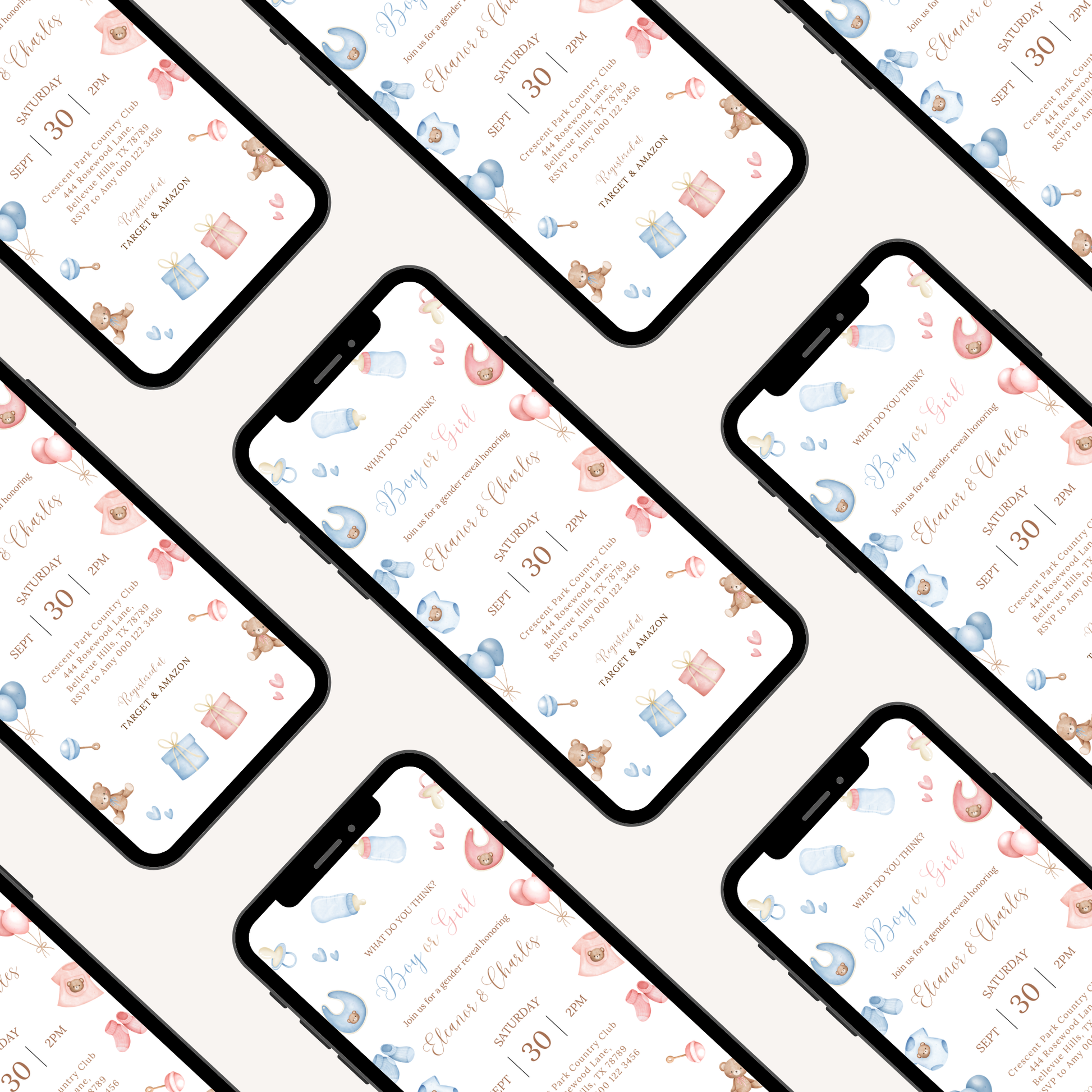 đđ Blue & Pink Gender Reveal Baby Shower Invitation đđ