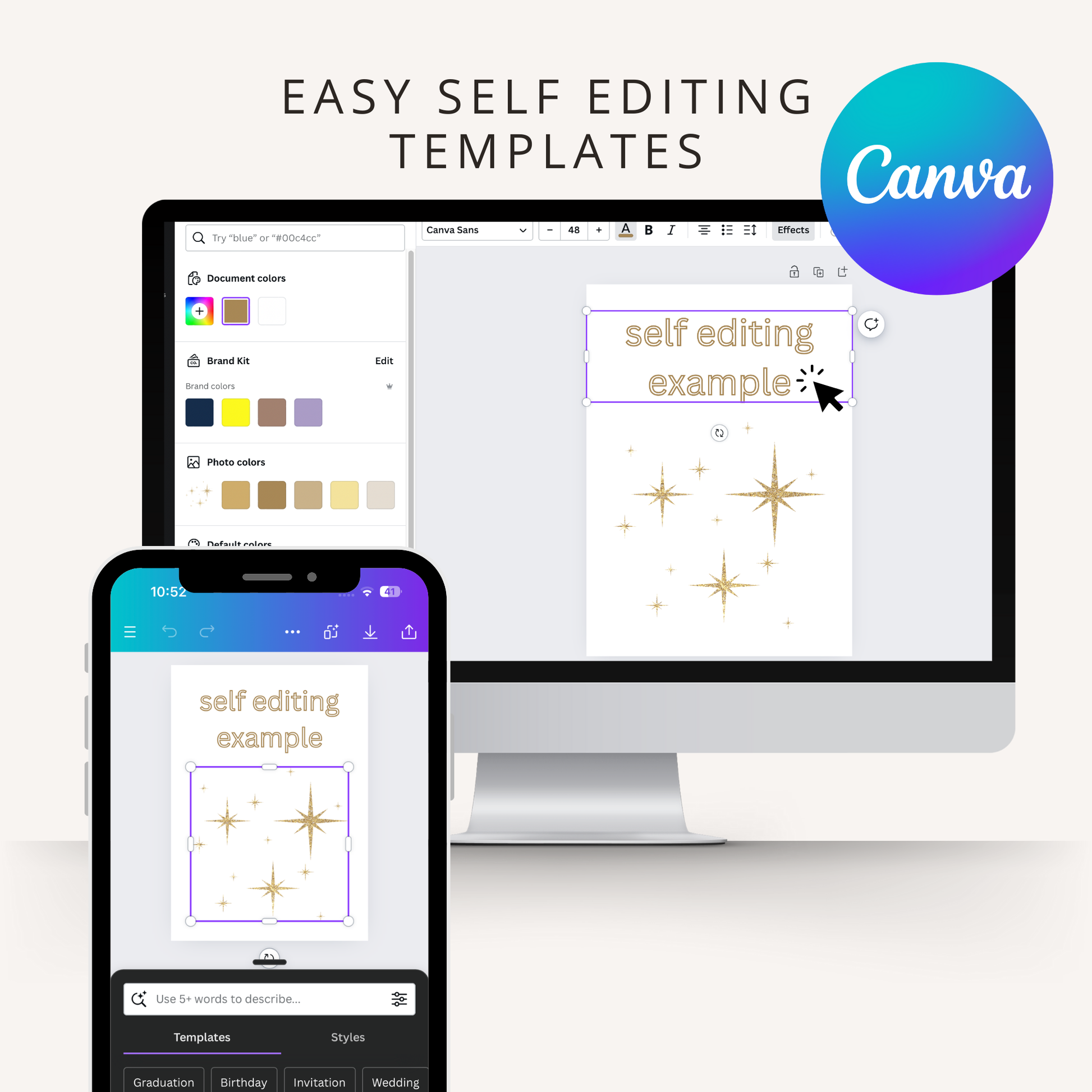 Simply edit using your computer, laptop, or even your phone! Sign up for Canva FOR FREE and start editing!